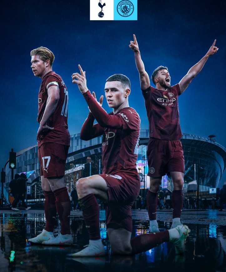 熱刺隊發(fā)布的海報中兩隊主帥波斯特科格魯與瓜迪奧拉領(lǐng)銜,雙方多位球員出鏡,熱刺球員包括孫興慜、麥迪遜、特爾等,曼城方面則有福登、格拉利什、格瓦迪奧爾、埃德森。