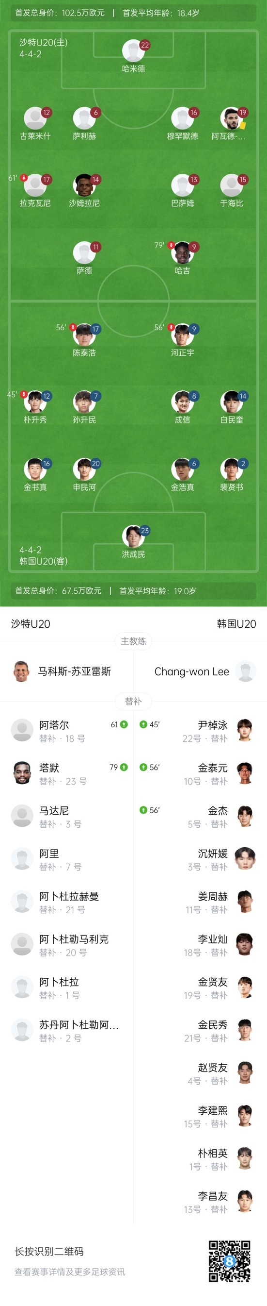 下半場(chǎng)補時(shí)3分鐘,U20沙特0-0韓國U20。