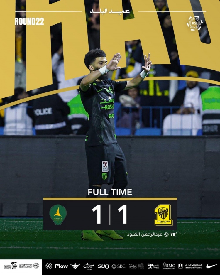 吉達聯(lián)合客場(chǎng)1-1戰平卡利杰,聯(lián)賽4連勝終結。