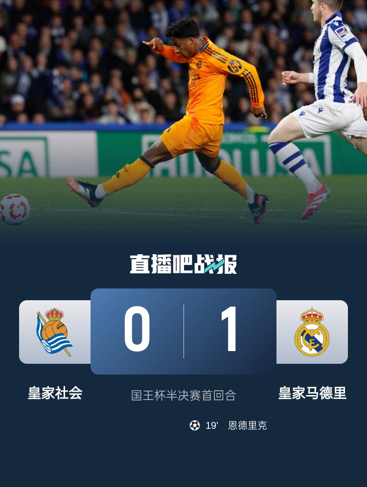 恩德里克制勝,皇馬1-0皇家社會(huì )占得先機。