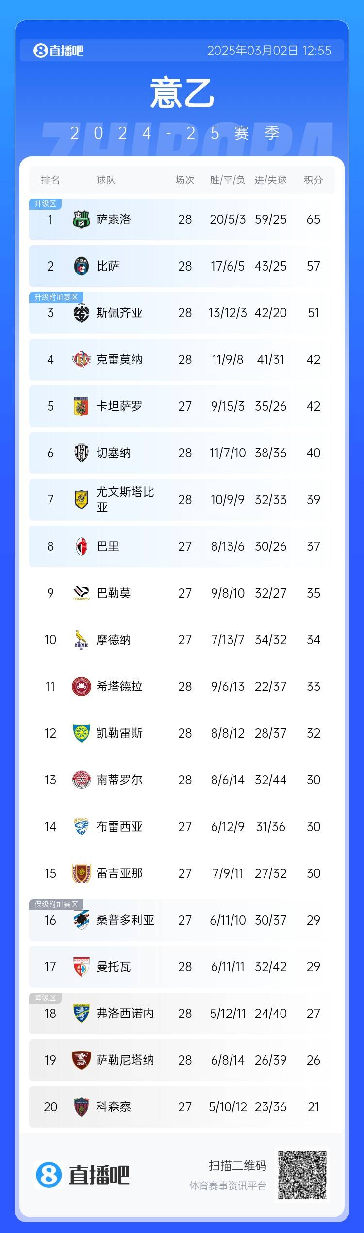 而在直通區的分數上,薩索洛已經(jīng)14分領(lǐng)跑直通區,幾乎已經(jīng)確定了一個(gè)直接升級名額。