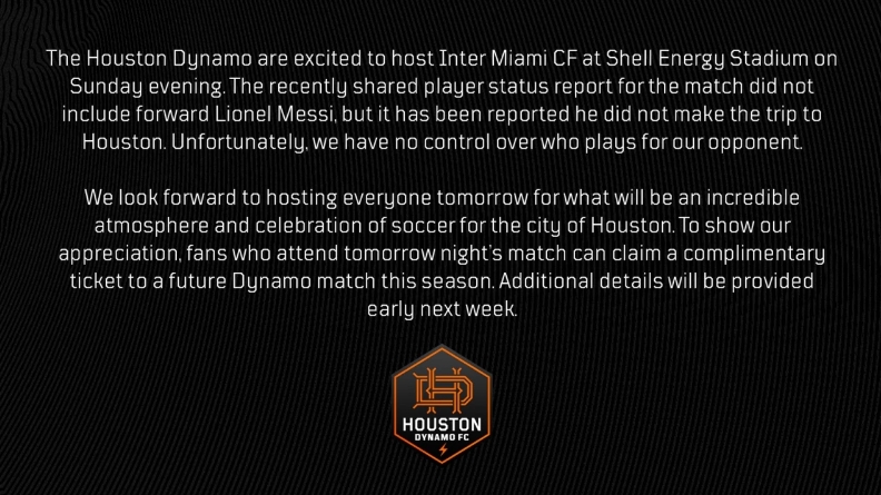 休斯頓迪納摩俱樂(lè )部很高興能在周日晚上在主場(chǎng)迎戰邁阿密?chē)H俱樂(lè )部。最近的比賽球員狀態(tài)報告中沒(méi)有梅西,據報道稱(chēng)他沒(méi)有前往休斯頓。