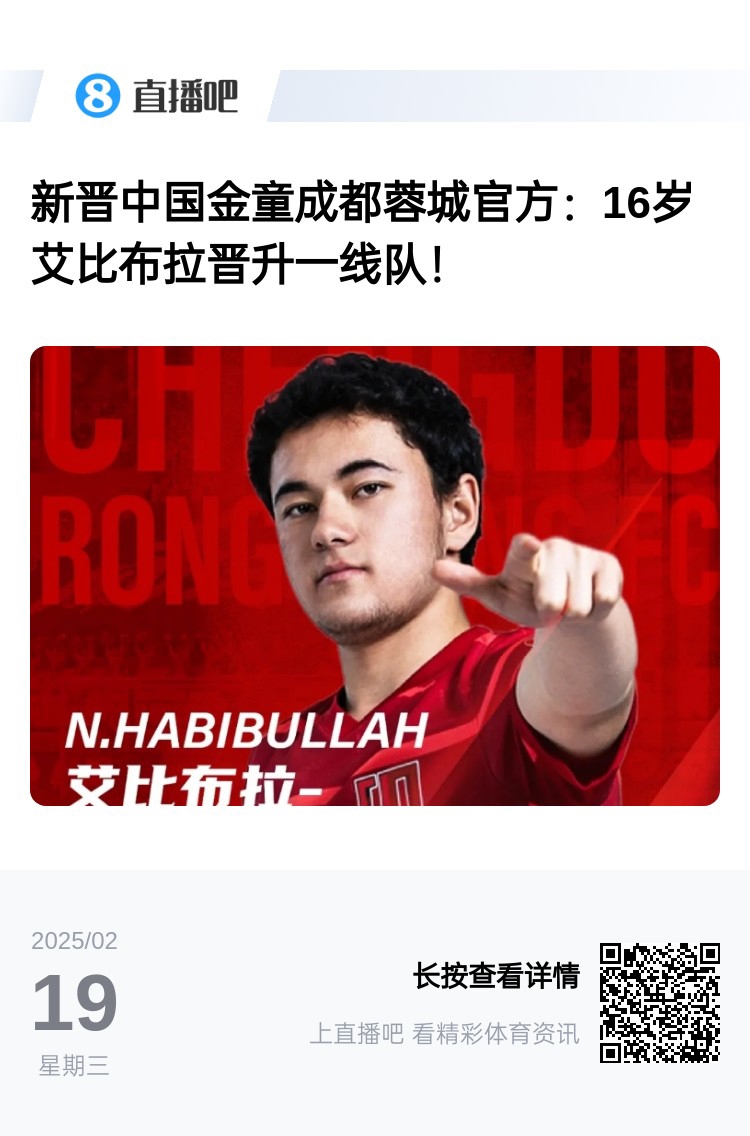 U17國足陣中,艾比布拉同樣被提拔至成都蓉城一線(xiàn)隊,今晚蓉城對陣津門(mén)虎,16歲的艾比布拉能否上演中超首秀?