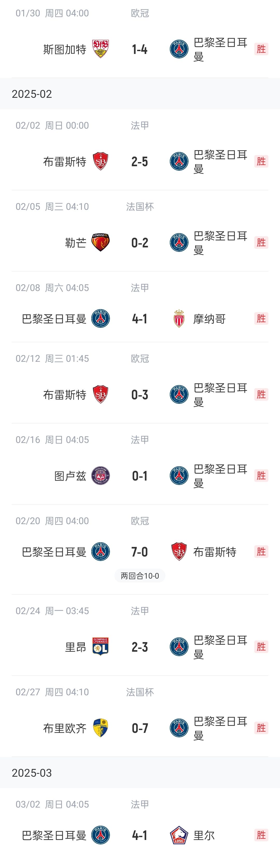 法甲第24輪,巴黎圣日耳曼4-1戰勝里爾,在各項賽事豪取10連勝,近22場(chǎng)比賽保持不敗。