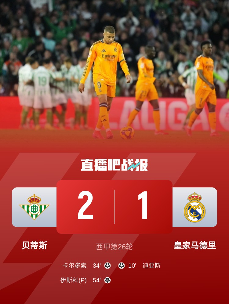 皇馬本輪1-2不敵貝蒂斯,白衣軍團在聯(lián)賽輸掉關(guān)鍵戰役,近5輪僅1勝。