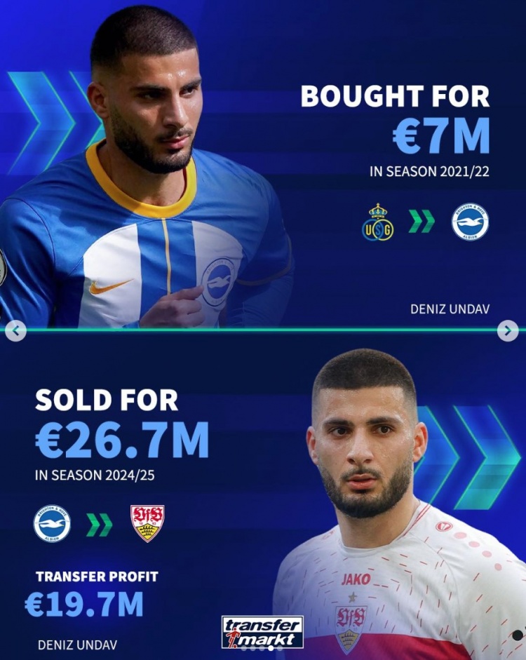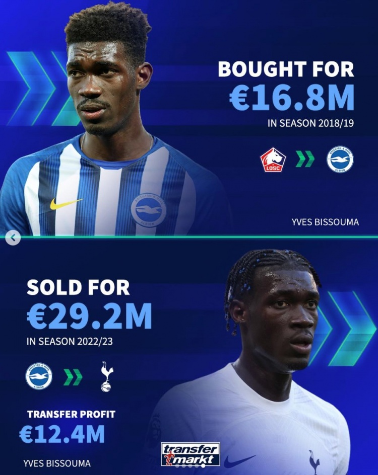 3月3日訊 《轉會(huì )市場(chǎng)》統計了布萊頓近年的5筆低買(mǎi)高賣(mài)轉會(huì )操作,共計凈賺超過(guò)2億歐元。