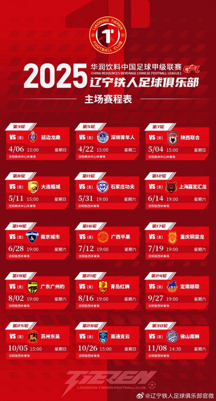 2025賽季遼寧鐵人一線(xiàn)隊大名單、主場(chǎng)賽程