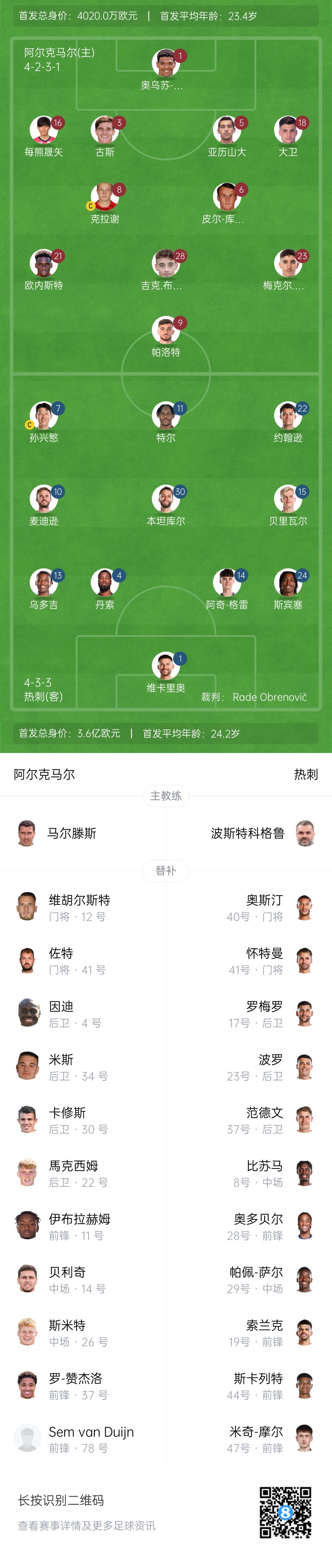 3月7日訊 歐聯(lián)杯16強首回合,阿爾克馬爾主場(chǎng)迎戰熱刺比賽即將打響。賽前首發(fā)出爐。