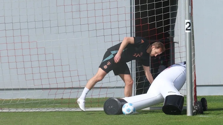 該媒體指出,拜仁大部分球員都選擇留在室內進(jìn)行恢復性訓練,但凱恩和奧利塞選擇來(lái)到訓練場(chǎng)加練射門(mén)。盡管沒(méi)有門(mén)將球員協(xié)助,但他們借用了兩個(gè)充氣玩偶在球門(mén)位置鎮守。