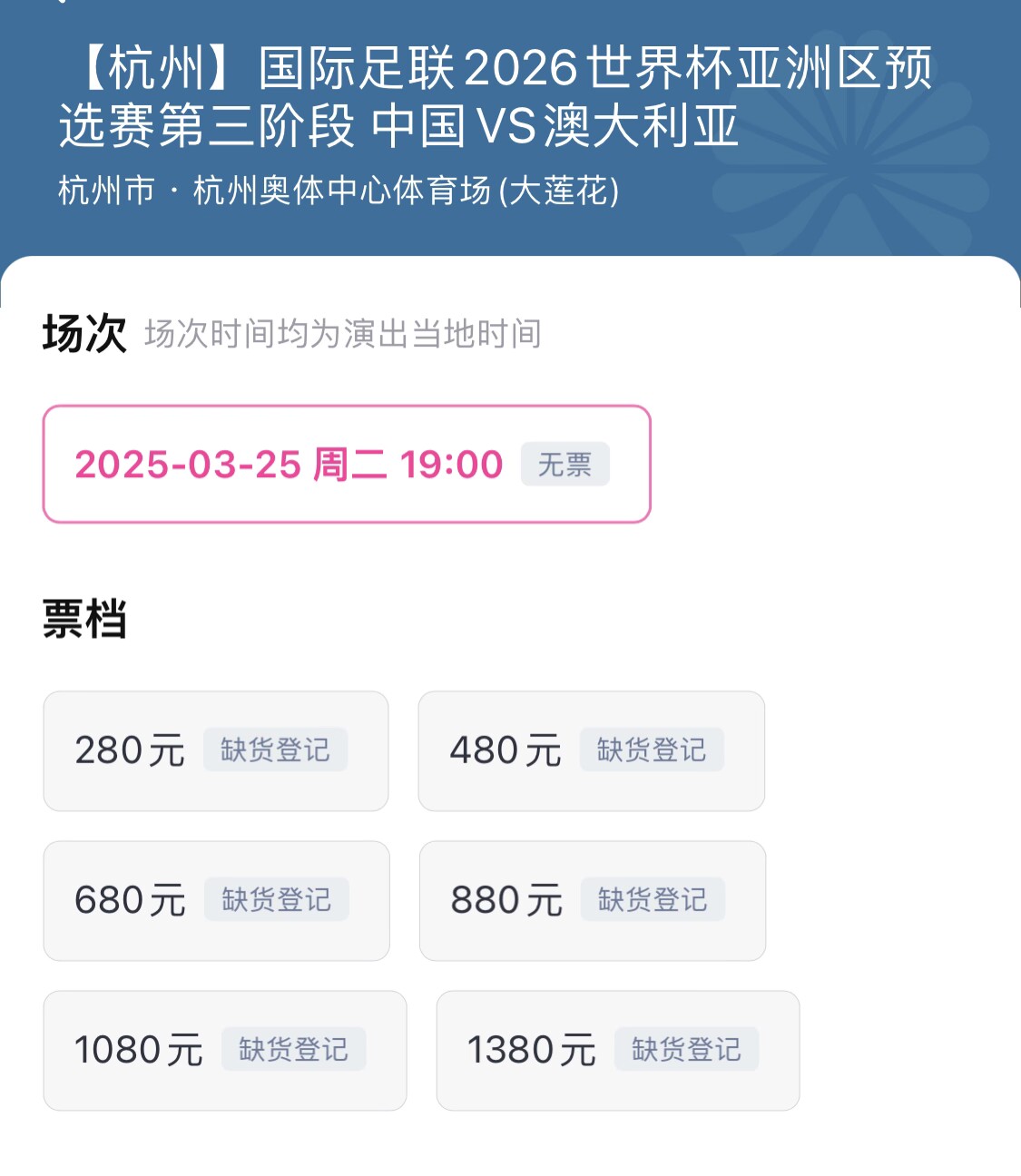 3月25日18強賽國足vs澳大利亞門(mén)票早已售罄,官方票務(wù)信息顯示,3月11日0:00起停止退票。這個(gè)時(shí)間點(diǎn)將成為最后的“撿漏”(回流票)的機會(huì )。 標簽: 足球 中超 中國足球 中國男足