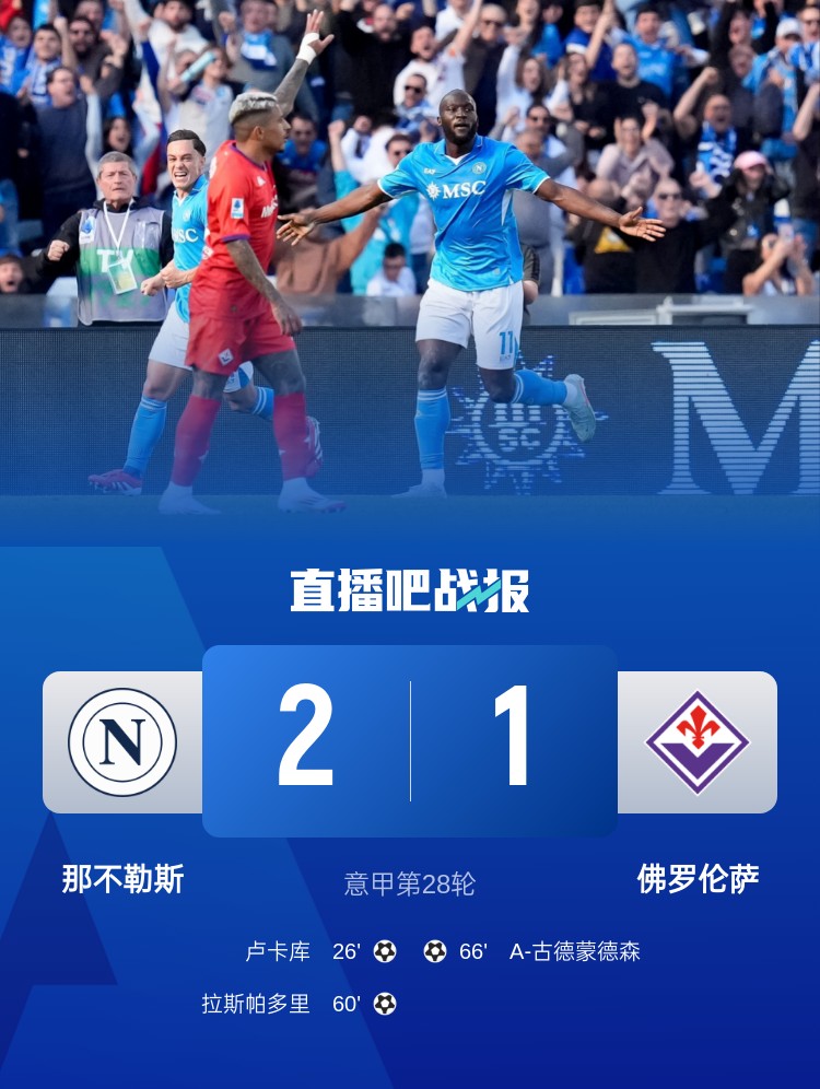 那不勒斯2-1擊敗佛羅倫薩,取得近6輪首勝,盧卡庫、拉斯帕多里破門(mén)。