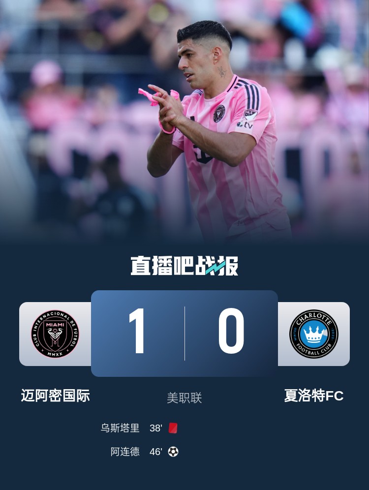 美職聯(lián)本輪邁阿密?chē)H1-0擊敗夏洛特FC,梅西替補未出場(chǎng),阿連德破門(mén),蘇亞雷斯助攻。