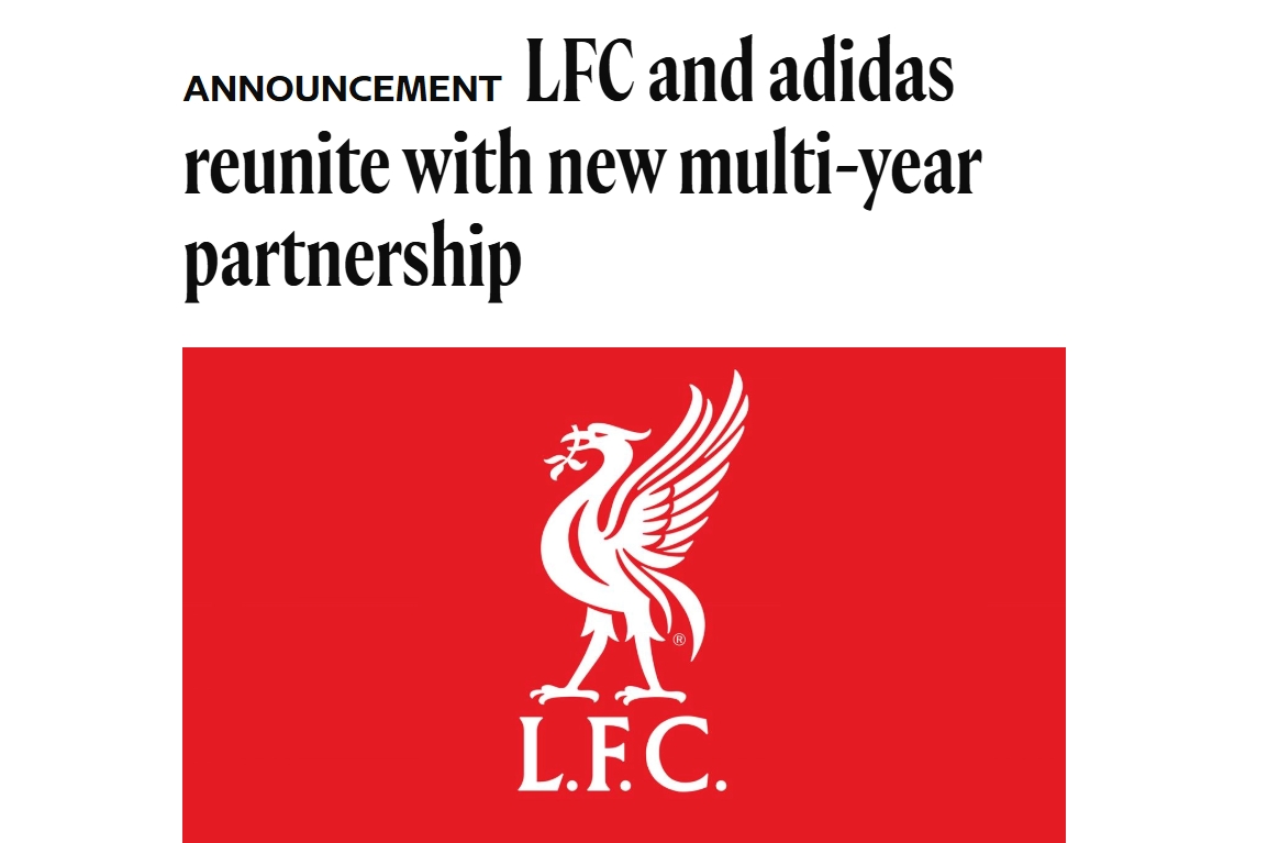 03月10日訊 官方消息,利物浦與阿迪達斯時(shí)隔13年再度攜手,后者成為俱樂(lè )部的官方球衣贊助商。利物浦就此結束了與耐克的五年合作期。