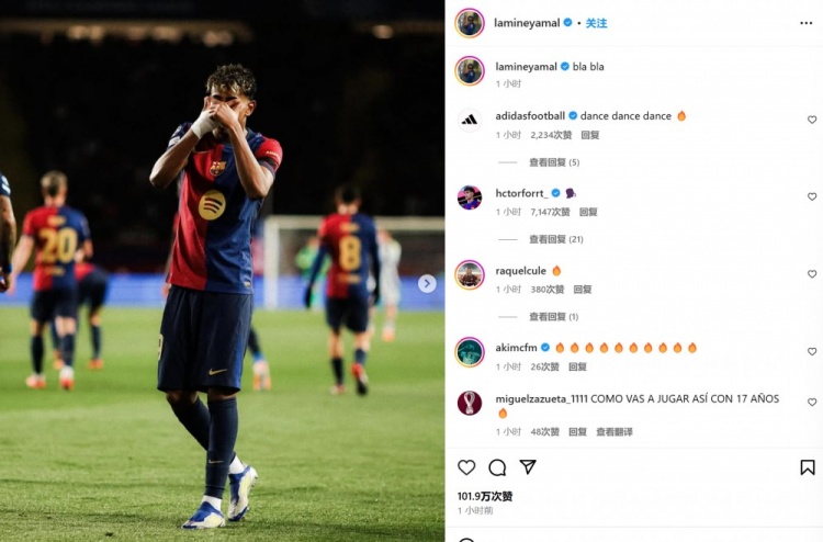 亞馬爾還通過(guò)社媒曬出自己的慶祝照,并配文:“bla bla”,似乎是在回擊近期對他的質(zhì)疑。