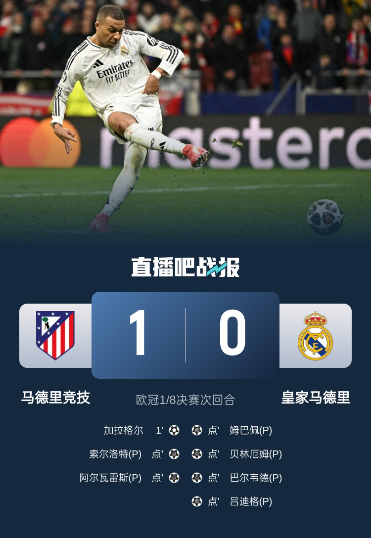 歐冠1/8決賽次回合,皇馬兩回合2-2,點(diǎn)球大戰4-2擊敗馬競晉級歐冠8強,將迎戰阿森納。上半場(chǎng),加拉格爾閃擊破門(mén),阿爾瓦雷斯兩次勁射被庫爾圖瓦撲出;下半場(chǎng),姆巴佩造點(diǎn),維尼修斯主罰打飛;加時(shí)賽,雙方均未制造破門(mén)良機;點(diǎn)球大戰,阿爾瓦雷斯滑倒二次觸球進(jìn)球無(wú)效,巴斯克斯主罰被撲,略倫特擊中橫梁。