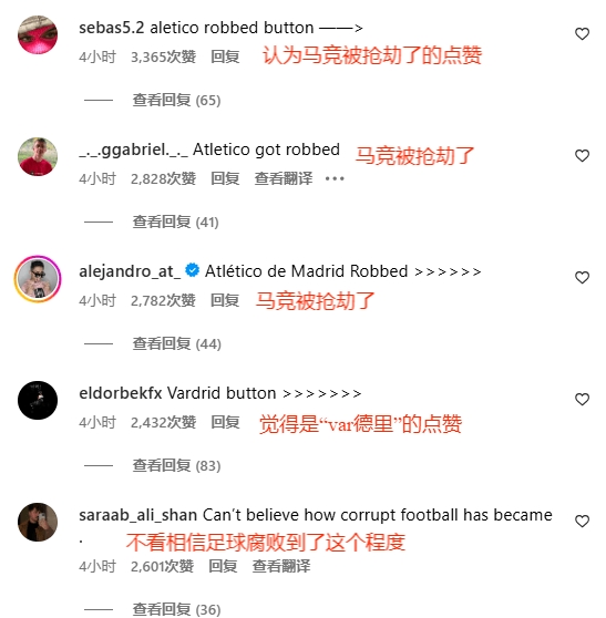比賽結束后,歐冠官方ins評論區被刷屏↓