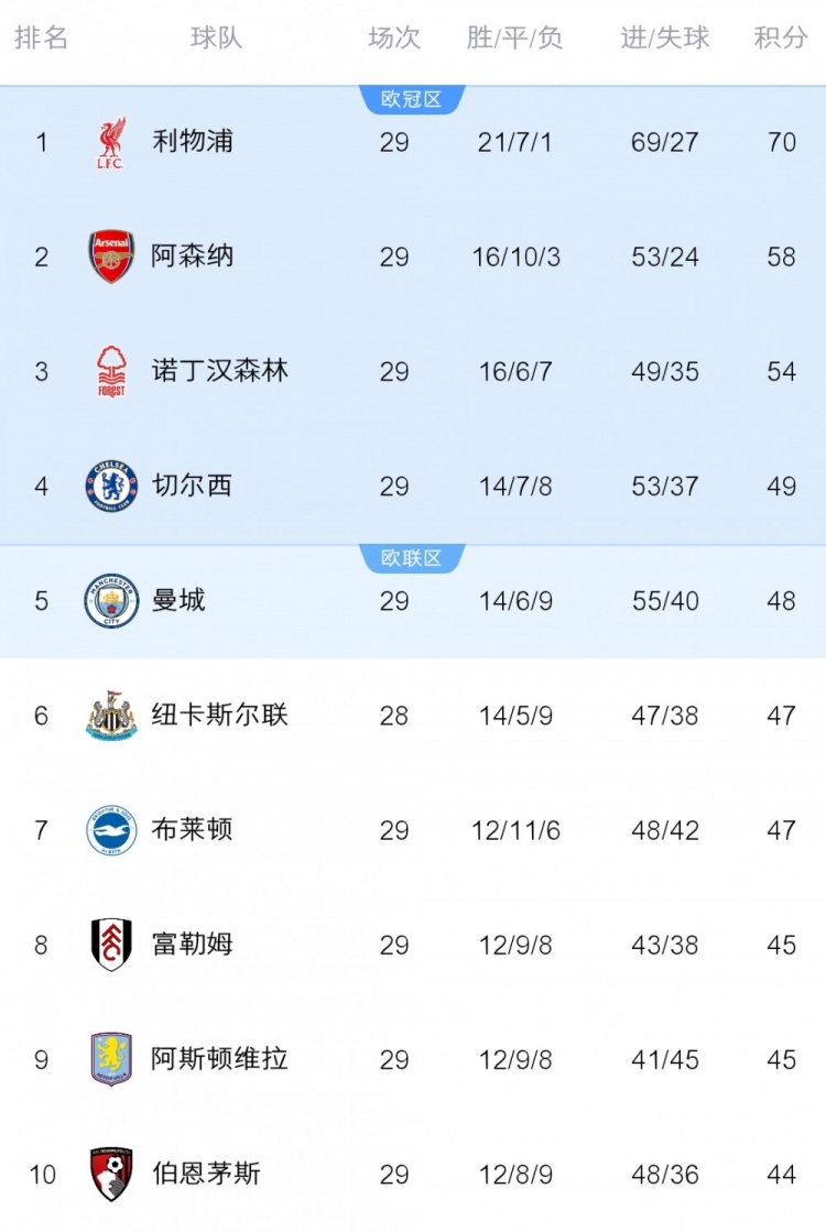 標簽: 足球 英超 曼城 諾丁漢森林 伯恩茅斯 布萊頓 紐卡斯爾聯(lián) 切爾西 阿斯頓維拉 富勒姆