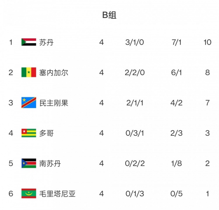 B組:馬內領(lǐng)銜的塞內加爾意外落后蘇丹,兩隊將于本周五迎來(lái)一次正面對決