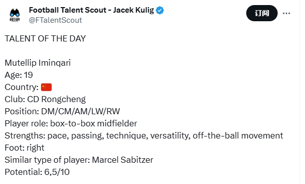 03月19日訊 王鈺棟昨日登上全球球探網(wǎng)站Football Talent Scout“今日天才”板塊,據博主“朗尼克”介紹,這是過(guò)去十年間第二個(gè)登上這個(gè)網(wǎng)站的中國球員。比王鈺棟更早登上Football Talent Scout的是蓉城青訓出身的木塔力甫。