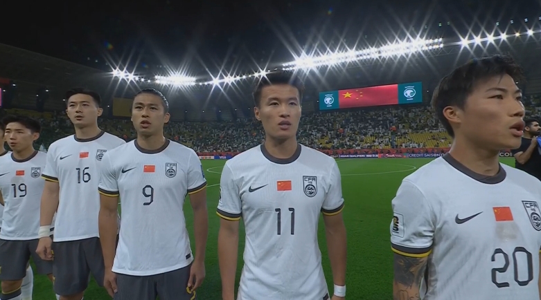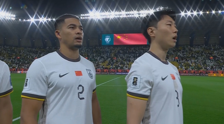 大戰一觸即發(fā)!賽前國歌儀式,國足首發(fā)11人高唱國歌