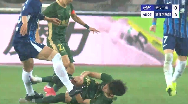03月28日訊 中超第3輪,武漢三鎮vs浙江。比賽第47分鐘,鄭凱木從身后踢倒王鈺棟,同時(shí)在王鈺棟倒地后,鄭凱木落地正好踩中王鈺棟腳踝,王鈺棟痛苦倒地。