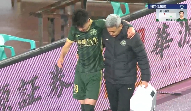 隨后隊醫進(jìn)場(chǎng)簡(jiǎn)單治療,擔架進(jìn)場(chǎng)將王鈺棟抬離球場(chǎng)。最終王鈺棟無(wú)法堅持,被姚均晟換下。
