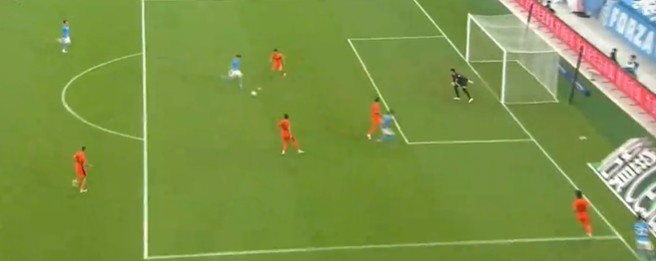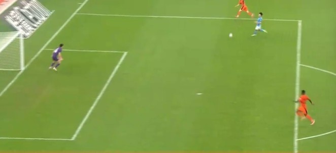 第25分鐘,列昂索前場(chǎng)接直塞球過(guò)掉馬鎮后推射被門(mén)線(xiàn)解圍?!?/p>