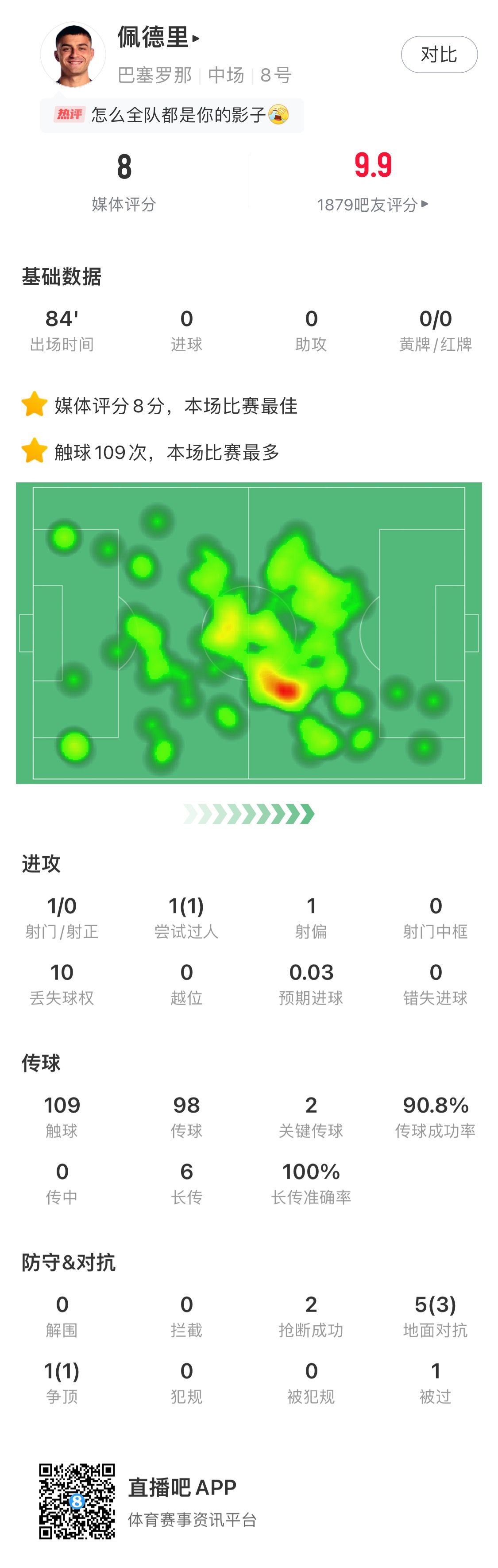03月28日訊 國際比賽日后,巴薩補賽3-0擊敗奧薩蘇納,佩德里延續“大師級”表現,109次觸球,98次傳球90.8%成功率,2次關(guān)鍵傳球,6次長(cháng)傳100%成功率,2次搶斷成功。