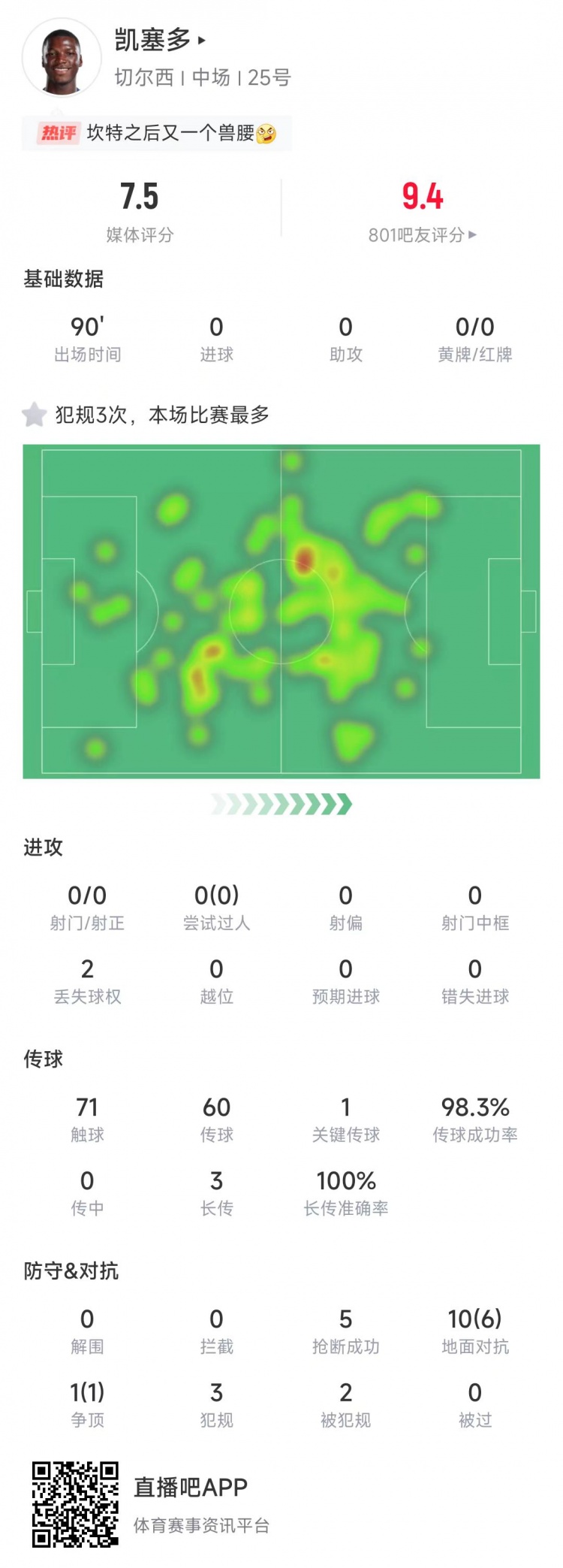 凱塞多當選本場(chǎng)比賽最佳球員,切爾西官方社媒曬出他領(lǐng)獎的照片,配文:“這個(gè)人的表現太棒了?!?/p>