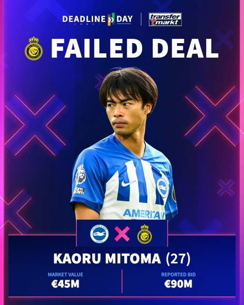 球員身價(jià)4500萬(wàn)歐,勝利報價(jià)6500萬(wàn)歐,后加價(jià)至9000萬(wàn)歐,遭布萊頓拒絕。