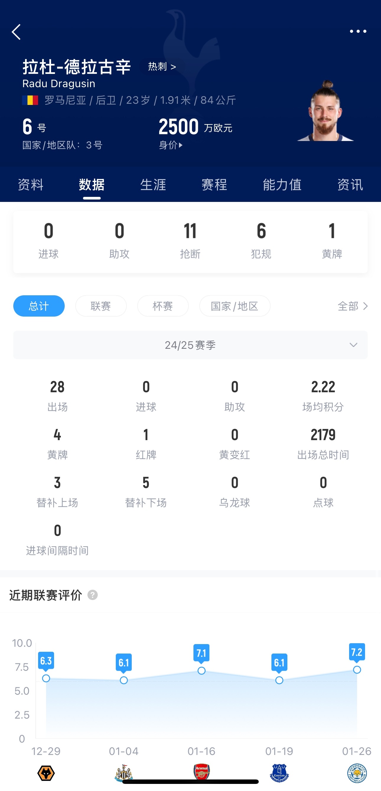 德拉古辛上賽季冬窗從熱那亞加盟熱刺,轉會(huì )費總價(jià)3000萬(wàn)歐元,有報道稱(chēng),德拉古辛拒絕了拜仁的邀請選擇了熱刺。