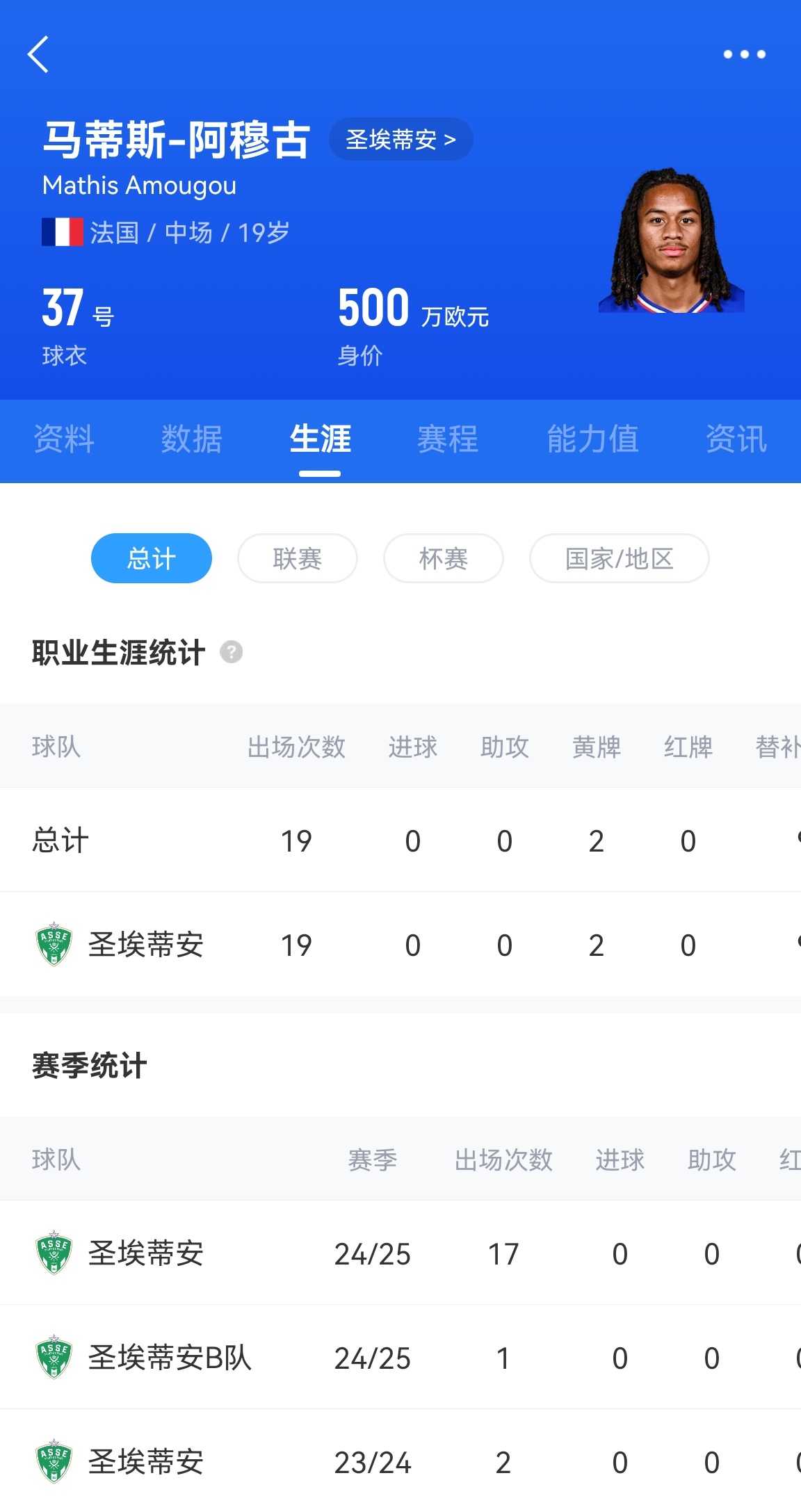 阿穆古是圣埃蒂安青訓出身,上賽季完成一線(xiàn)隊首秀,截至目前共為圣埃蒂安一隊出場(chǎng)19次。
