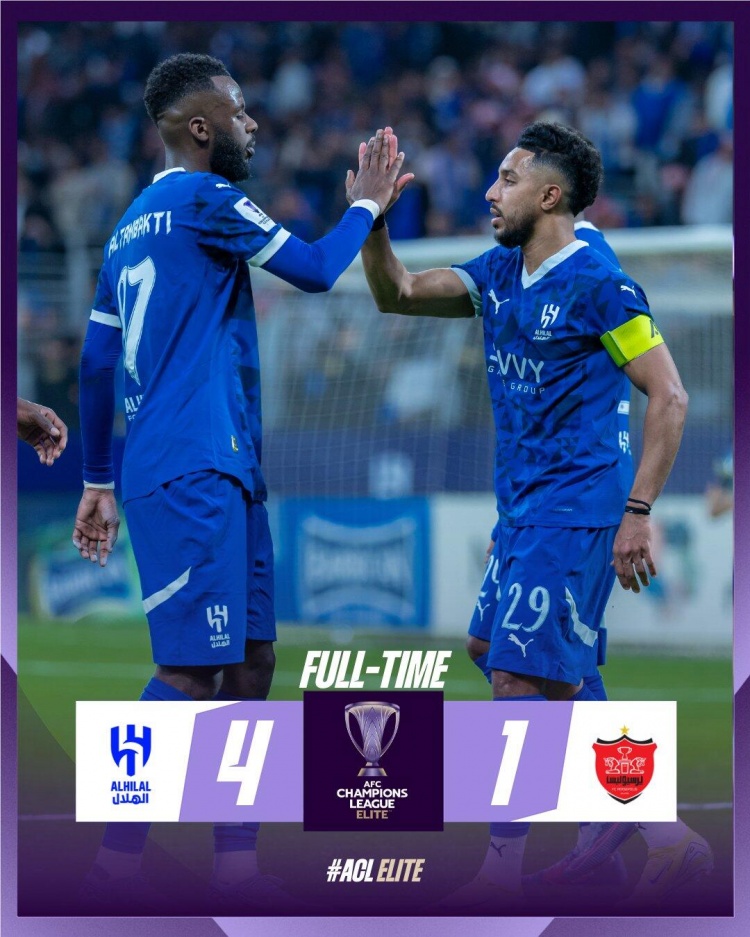 亞冠精英聯(lián)賽西亞區第7輪,利雅得新月4-1擊敗波斯波利斯。上半場(chǎng),馬爾科姆超級一條龍破門(mén),坎塞洛擴大優(yōu)勢,多薩里連進(jìn)兩球。下半場(chǎng),布萊希送點(diǎn),格維勒西亞尼點(diǎn)射扳回一球。