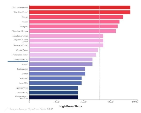 哈蘭德加盟之后,曼城的高位壓迫效率已經(jīng)跌至聯(lián)盟中游,隨著(zhù)京多安和德布勞內的老化,球隊的傳控能力又出現了明顯下降,瓜迪奧拉的球隊失去了賴(lài)以成名的殺招。