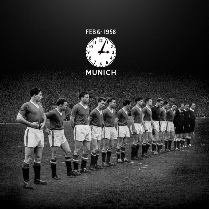 1958年2月6日,載著(zhù)曼聯(lián)隊員和球迷以及隨隊記者的飛機在西德慕尼黑機場(chǎng)覆有積雪的跑道上第三次嘗試起飛時(shí)失敗墜毀,機上當時(shí)44名乘客以及機組人員中的23人不幸遇難,遇難者包括8名曼聯(lián)球員以及3名俱樂(lè )部的職員。