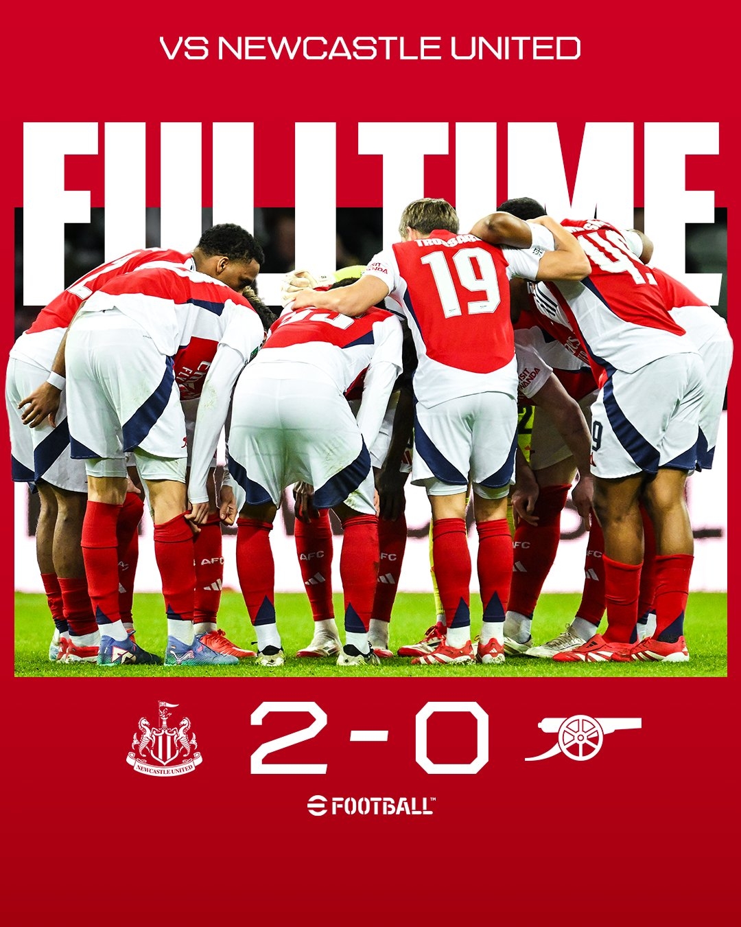 阿森納0-2遭紐卡斯爾雙殺,總比分0-4出局,無(wú)緣決賽。
