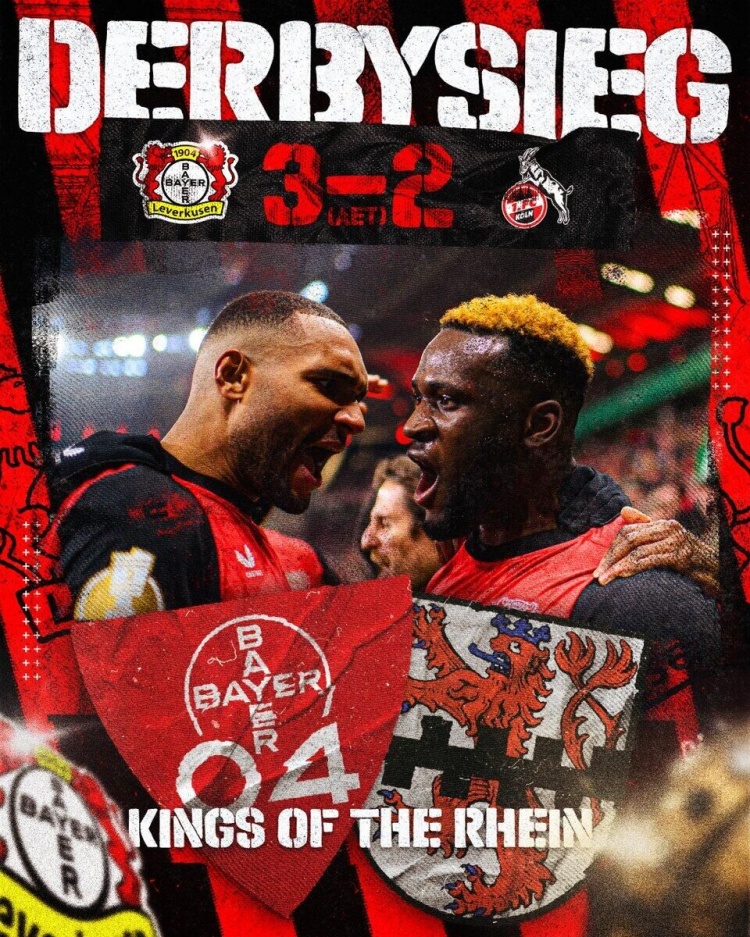 德國杯-勒沃庫森加時(shí)3-2逆轉科隆晉級四強 ??穗p響+常規時(shí)間絕平