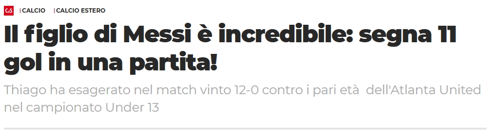 《羅體》標題:梅西的兒子太厲害了,一場(chǎng)比賽轟11球