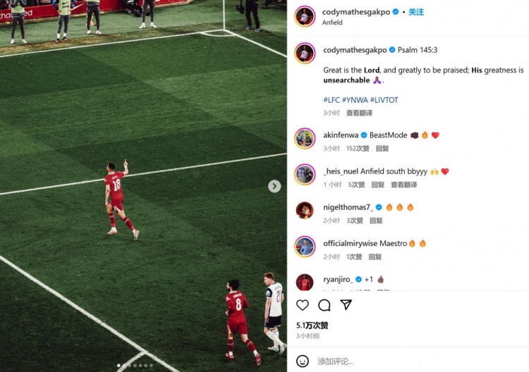 而加克波也曬出自己的比賽照,并附上《圣經(jīng)》中的內容:“詩(shī)篇145:3。耶和華本為大,該受大贊美,其大無(wú)法測度。????????”