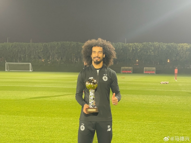 2月7日訊 今日,《體壇周報》記者馬德興更新社媒,曬出自己前往多哈向卡塔爾球星阿菲夫頒發(fā)亞洲金球獎獎杯的照片。