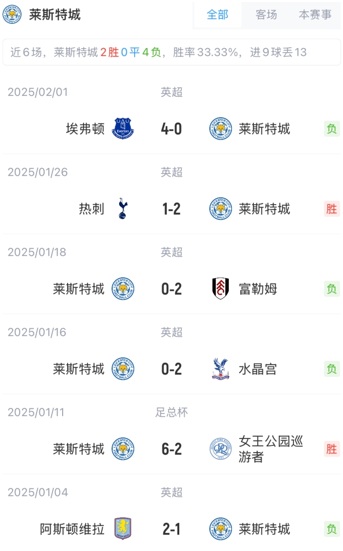 ??2025年02月06日 02月06日 足球之夜-謙遜·熱血 ??2025年02月06日 巴圣錦標-內馬爾回歸首秀 桑托斯1-1戰平博塔弗戈SP ??2025年02月06日 法國杯-勒波爾雙響梅拉利替補建功 昂熱3-1斯特拉斯堡 ??2025年02月06日 德國杯-勒沃庫森加時(shí)3-2逆轉科隆晉級四強 ??穗p響+常規時(shí)間絕平 ??2025年02月06日 土杯-費內巴切5-0埃祖姆&11場(chǎng)不敗 塔利斯卡首球恩內斯里替補雙響 ??2025年02月06日 AC米蘭3-1羅馬進(jìn)意杯4強 特奧兩度助攻亞伯拉罕 菲利克斯首秀破門(mén) ??2025年02月06日 讀秒制勝!皇馬3-2萊加內斯進(jìn)國王杯四強 小將G-加西亞93分鐘絕殺 ??2025年02月06日 聯(lián)賽杯-紐卡2-0阿森納總比分4-0進(jìn)決賽 馬丁內利傷退拉亞出球送禮 ??2025年02月05日 國王杯-馬競5-0赫塔菲晉級四強 小西蒙尼雙響科雷亞傳射建功 ??2025年02月05日 亞特蘭大0-1不敵博洛尼亞無(wú)緣意杯4強 卡斯特羅替補登場(chǎng)2分鐘制勝 ??2025年02月05日 法國杯-巴黎2-0勒芒進(jìn)8強 杜埃破門(mén)巴爾科拉建功 ??2025年02月05日 法國杯-爆冷!戈麥斯破門(mén) 里爾點(diǎn)球大戰總分5-6不敵敦刻爾克 ??2025年02月05日 法國杯-西瑪補時(shí)絕殺 布雷斯特2-1特魯瓦 ??2025年02月05日 德國杯-翁達夫攻入唯一進(jìn)球 斯圖加特1-0淘汰奧格斯堡 ??2025年02月05日 亞冠精英-新月4-1波斯波利斯升第一 馬爾科姆1傳2射坎塞洛傳射