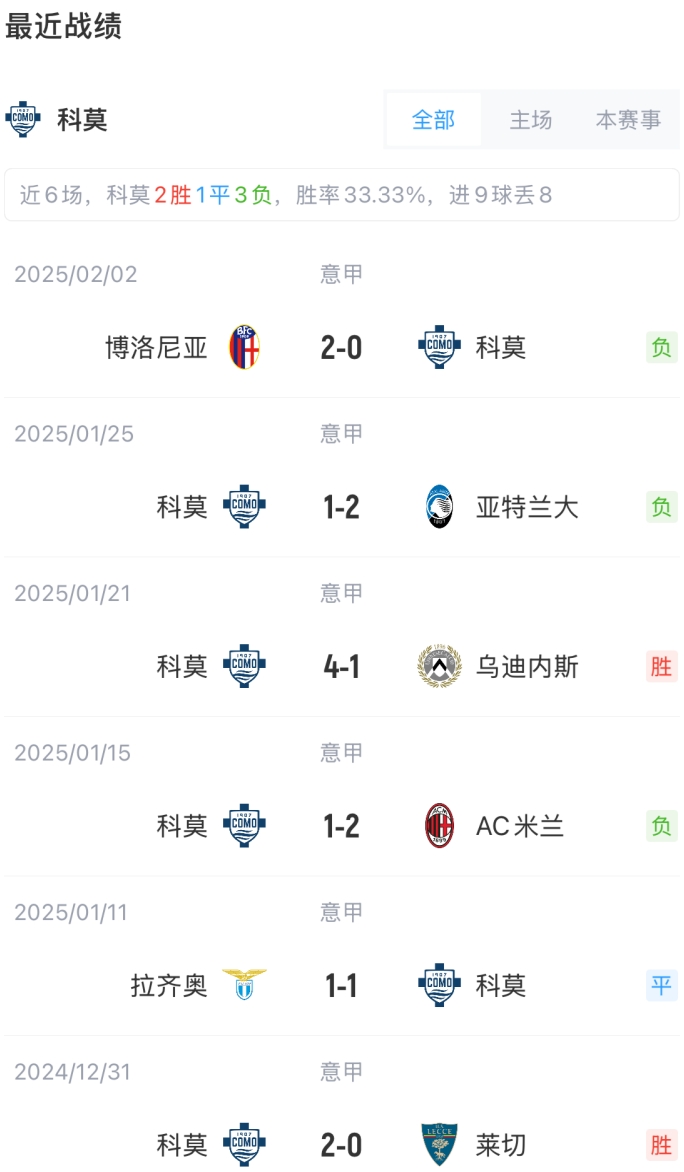 科莫首發(fā):30-讓-布特茲、28-斯莫爾契奇、5-戈爾達尼加、13-多塞納、41-瓦萊、33-達-庫尼亞、23-馬克西莫-佩羅內、38-阿薩內-迪奧、79-尼科-帕斯、7-斯特雷費扎、10-庫特羅內