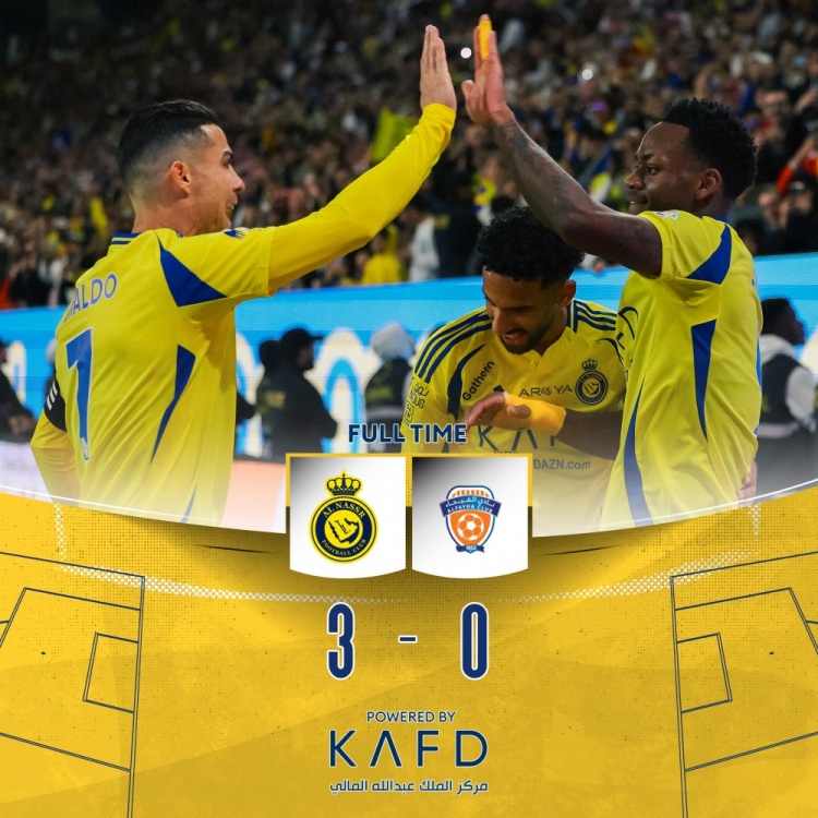 沙特聯(lián)第19輪,利雅得勝利3-0戰勝費哈,C羅破門(mén),杜蘭梅開(kāi)二度。