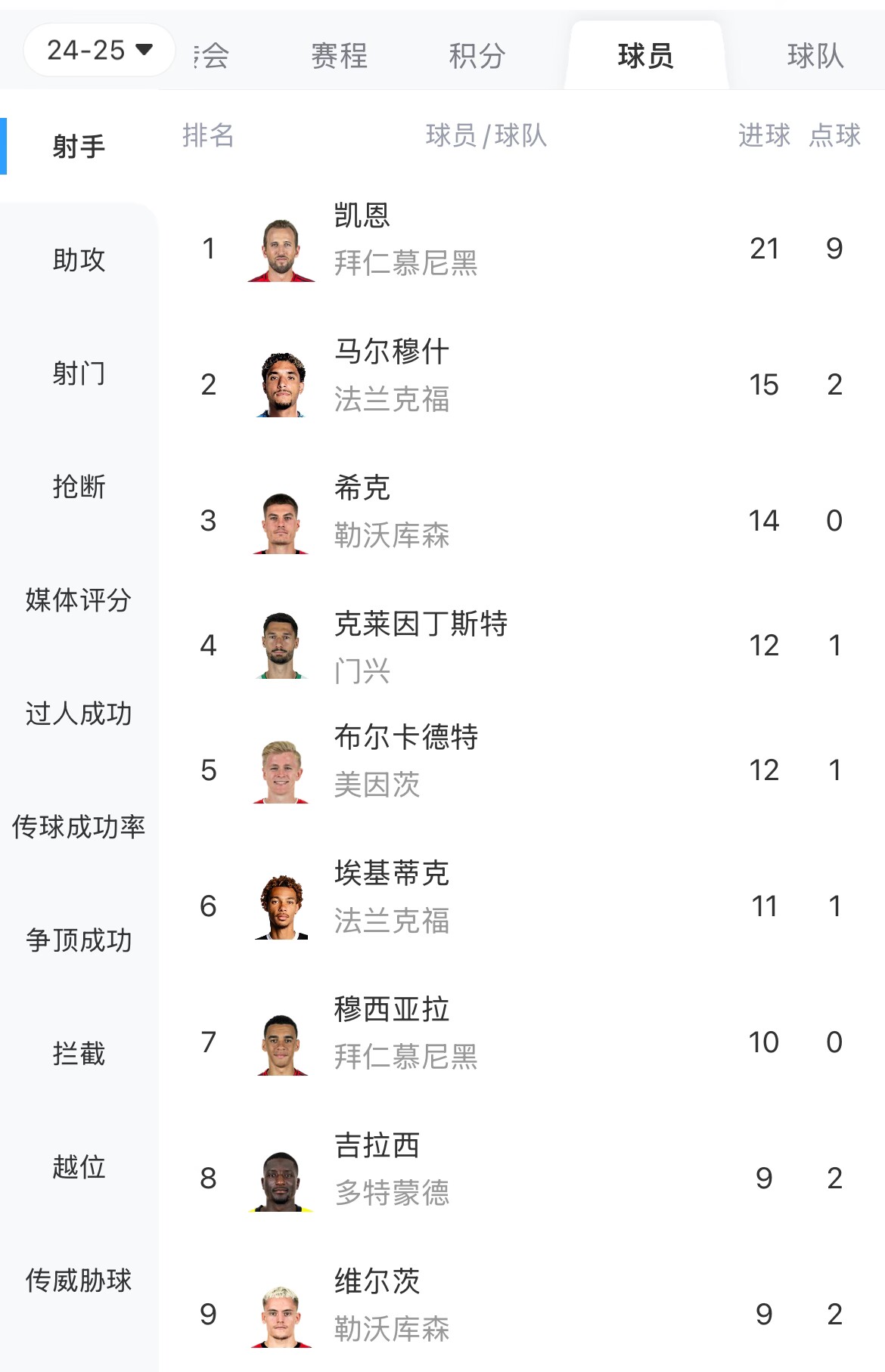 凱恩本場(chǎng)點(diǎn)射雙響,聯(lián)賽已打進(jìn)21球,暫6球優(yōu)勢領(lǐng)跑射手榜。