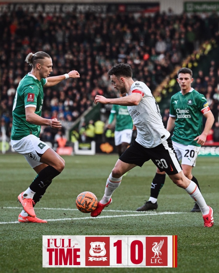 足總杯爆冷晉級!普利茅斯時(shí)隔69年再次擊敗利物浦