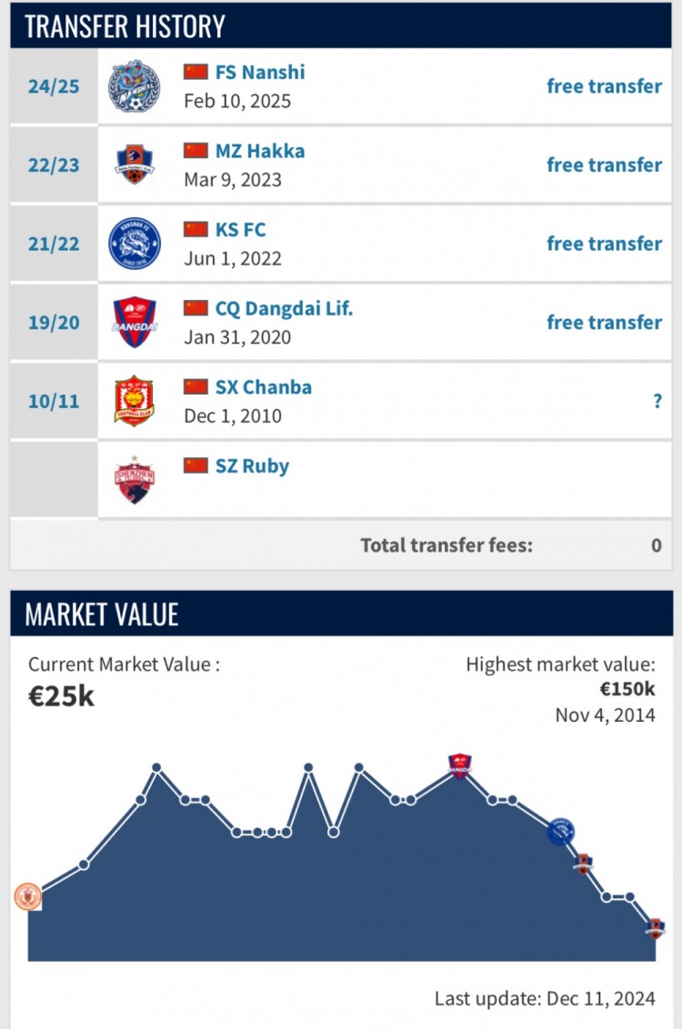 在德轉陳杰的個(gè)人頁(yè)面中,他已經(jīng)于2月10日加盟佛山南獅,不過(guò)合同年限并未披露。本次陳杰屬于自由身轉會(huì ),因此佛山南獅無(wú)需支付轉會(huì )費用。