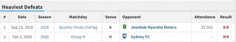 另外,海港隊史上還有另外一次0-4的失利。當時(shí)是在2020年12月1日,海港在亞冠小組賽0-4不敵悉尼FC,不過(guò)當時(shí)海港已經(jīng)提前兩輪出線(xiàn)。