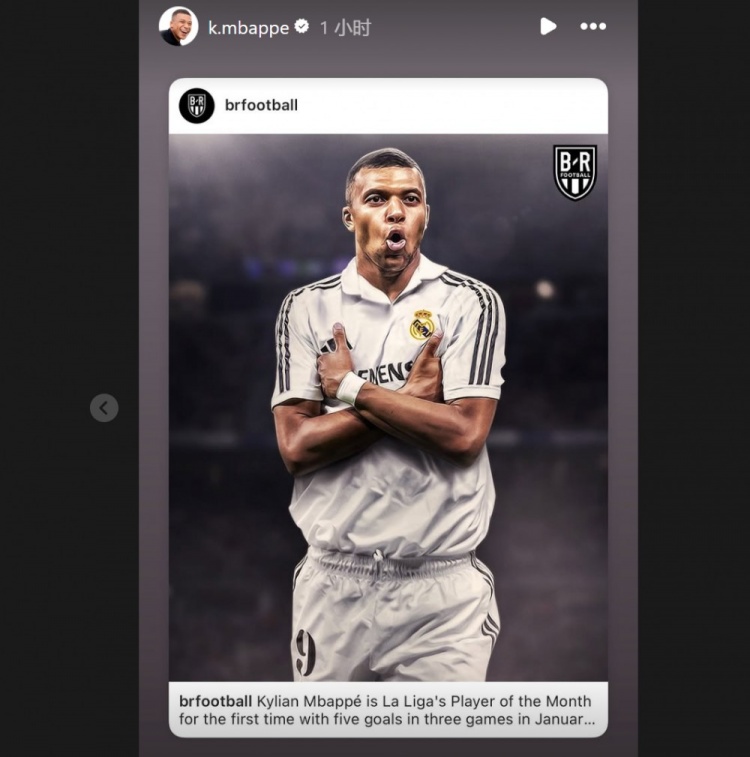 姆巴佩也通過(guò)社媒轉發(fā)了相關(guān)動(dòng)態(tài)作為紀念,并配上“月最佳球員”的縮寫(xiě)。
