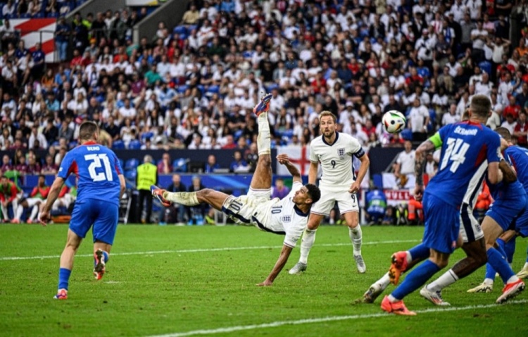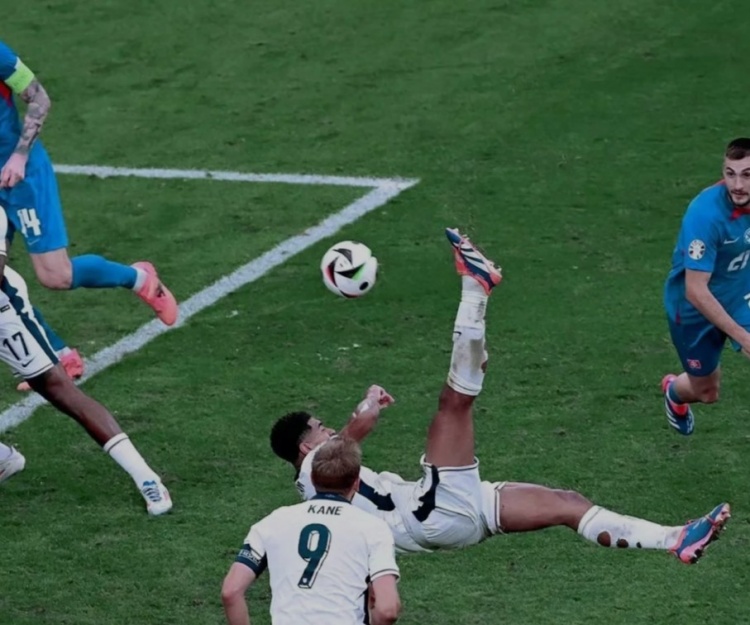 2024年歐洲杯英格蘭與斯洛伐克的1/8決賽上,貝林厄姆倒鉤破門(mén),那一刻,他和他偶像齊達內一樣出眾的身體柔韌性、協(xié)調性展露無(wú)遺。