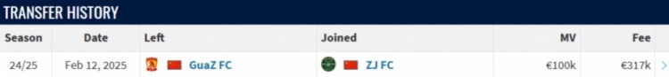 2月13日訊 根據德轉信息,原廣州隊門(mén)將霍深坪加盟浙江隊。